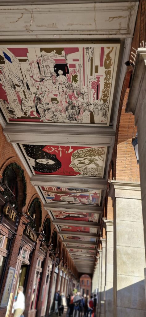 Le départ s’est fait depuis la Place du Capitole, avec ses belles arcades colorées, où se trouve même une représentation de Claude Nougaro.