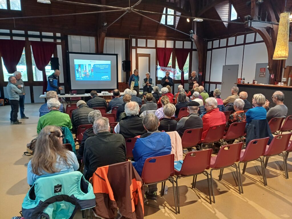 Le samedi, les animateurs des clubs affiliés à la Fédération Française de la Randonnée Pédestre de la Haute-Garonne se sont réunis à Luchon. Ils ont partagé une journée riche en échanges, en apprentissages et en moments conviviaux. Ensuite, la réunion a commencé vers 9h30, après un café d’accueil chaleureux. Elle s’est tenue dans le pavillon normand, une salle lumineuse et très agréable. La présidente, Jacqueline WINNEPENNINCKX-KIESER, a ouvert la séance en remerciant chaleureusement l’ensemble des participants, ainsi que les intervenants et les organisateurs. Elle a tenu à saluer tout d’abord la présence d’Éric Azemar, maire de Luchon. Ensuite, elle a remercié les intervenants Patrick Lagleize, 11ᵉ vice-président de la communauté de communes des Pyrénées Haut-Garonnaises, ainsi que le major Sébastien Lucena, commandant de l’unité de montagne de la Gendarmerie nationale de la Haute-Garonne. Enfin, elle a adressé ses remerciements aux membres actifs de l’organisation : Philippe Hiret, Joël Georgelin, mais aussi les salariés Apolline Maquet et David Guenot.